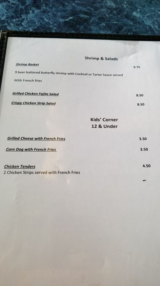 9 beer battered butterfly shrimp with Cocktail or Tartar Sauce served With French fries